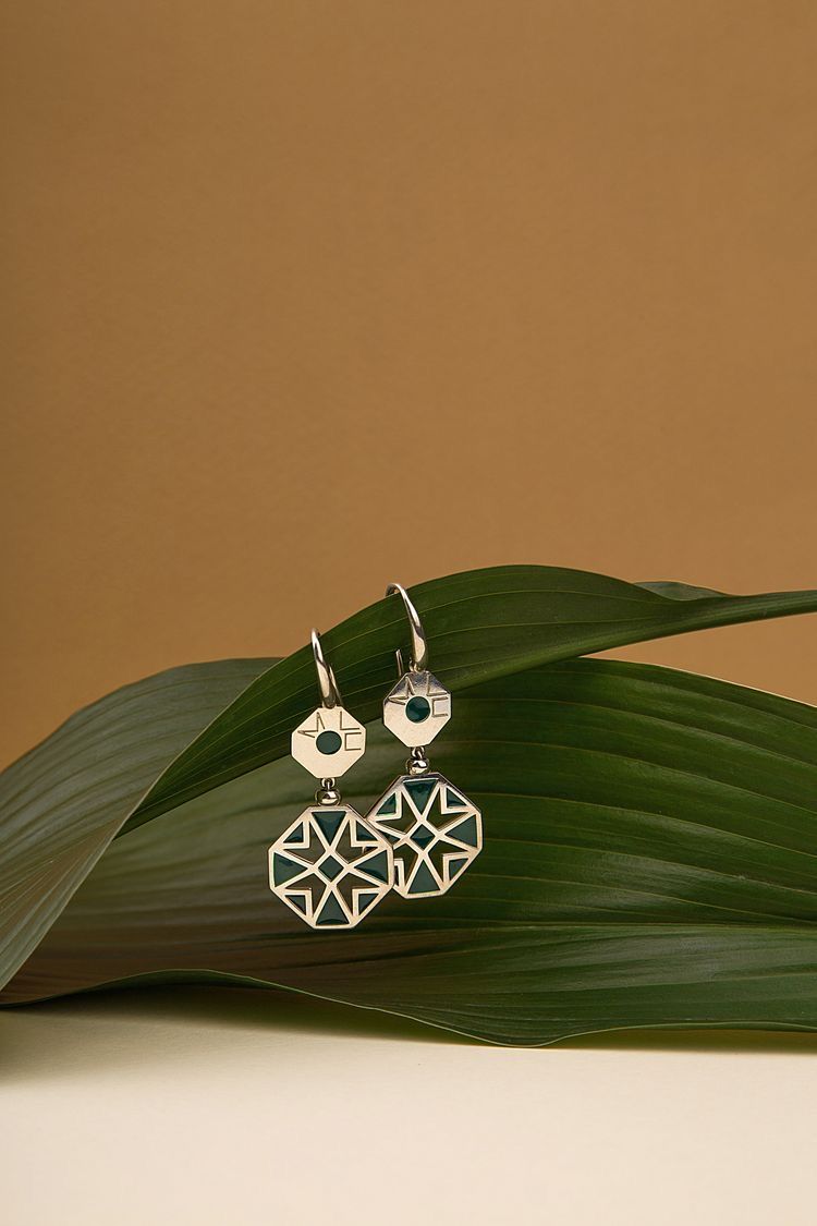 گوشوارههای مثلثی کژال با سنگ گرانیت مشکی رگهدار، الهام گرفته از طبیعت افریقای شمالی، تلفیقی از اصالت و زیبایی پرابهت